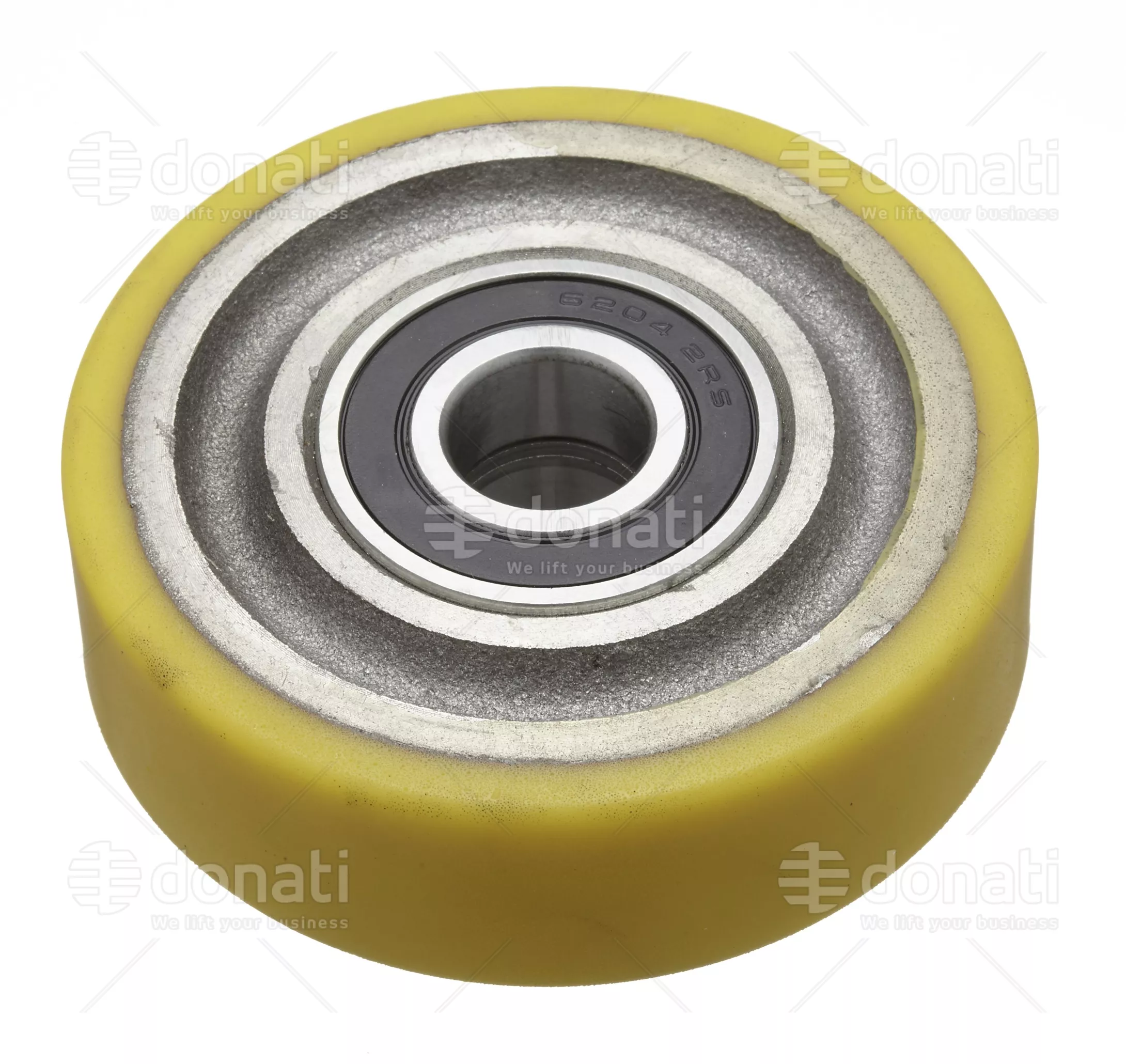CEAM - Rullo Ø125x25 mm, mozzo 25 mm, 2 cuscinetti 6202-2RS, foro Ø15 mm, durezza 95A, carico din. 250 daN - adatto per velocità nominali fino a 1,1 m/s