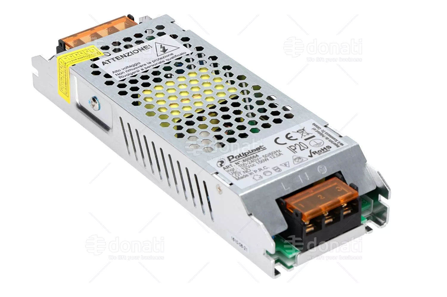 Alimentatore (trasformatore) 150 W, 100/240 Vca - 12 Vcc, 12,5 A, IP20, 178x61x28 mm