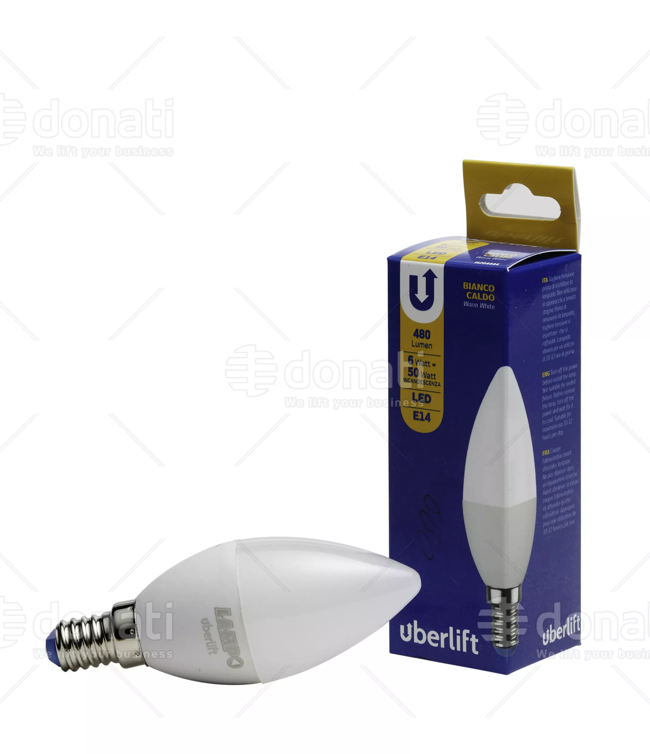 UBERLIFT - Lampadina led a oliva fascio 360°, E14, 220 Vca, 6 W, 3000 K