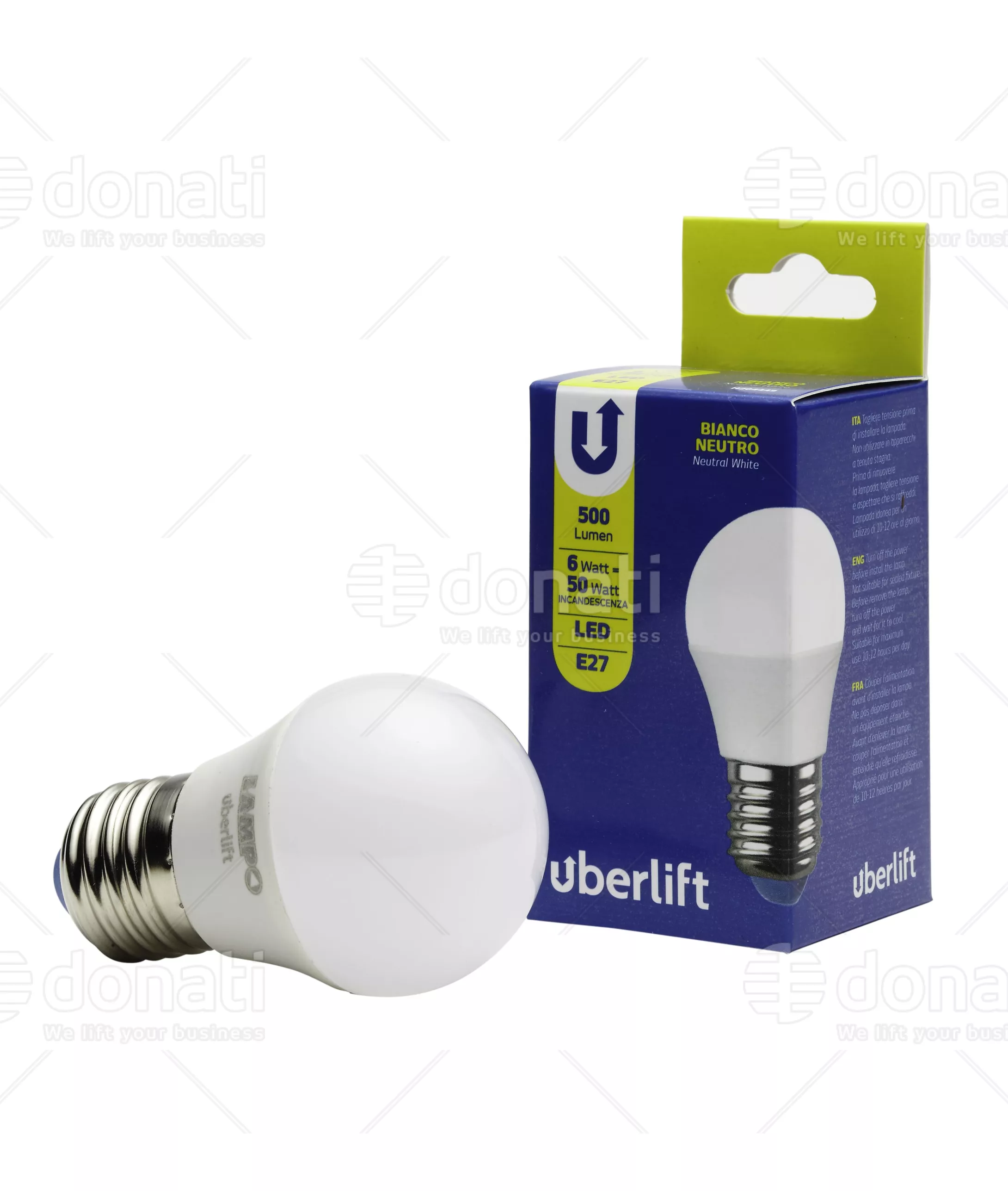 UBERLIFT - Lampadina led a sfera, 360°, E27, 220 Vca, 6 W, 4000 K, Ø45x75mm