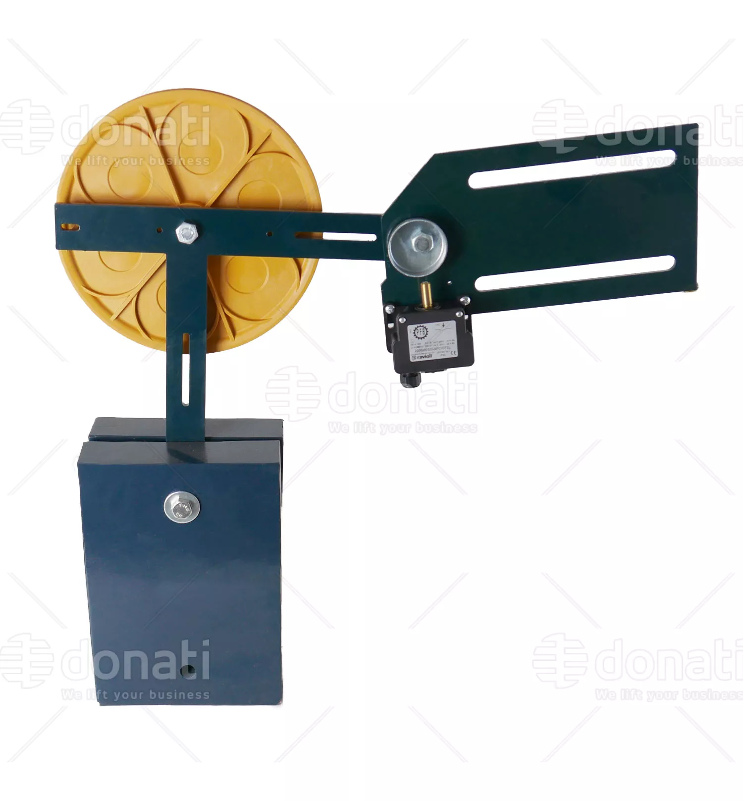 PFB - Tenditore verticale R4R reversibile puleggia in ghisa Ø200 mm contrappeso 22 kg + contatto. Sostituisce: QG09330 (ex 242260/G). |