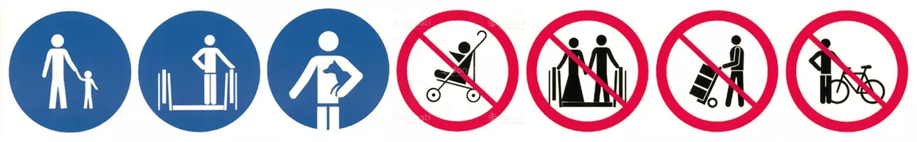 SL10396 Striscia adesiva prescrizioni e divieti EN115 - orizzontale (7 pittogrammi) Scale mobili Targhe, illuminazione e segnalazioni TARGHE DI ISTRUZIONI/DIVIETI CON PITTOGRAMMI PER SCALE MOBILI Striscia adesiva prescrizioni e divieti EN115 - orizzontale (7 pittogrammi) Sign in to buy